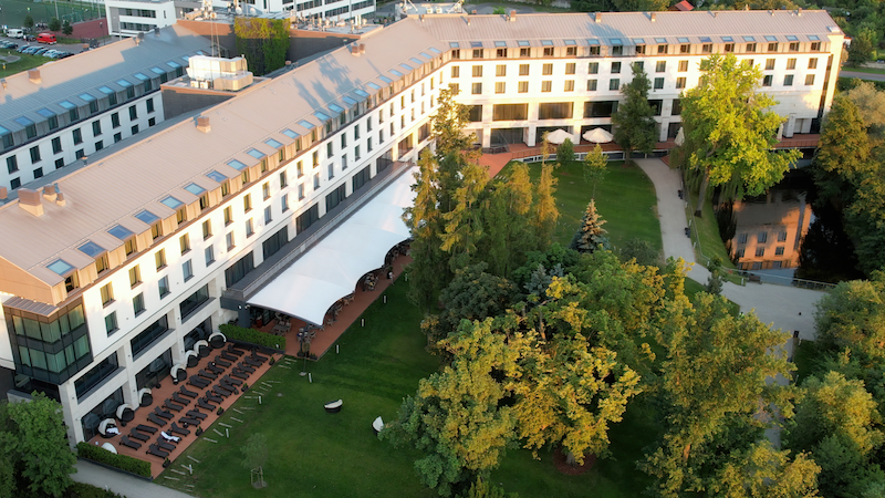Konferencje organizowane w DoubleTree by Hilton Warsaw należą do bardzo udanych i klienci bardzo często wracają z kolejnymi tego typu projektami. Jednym z wielu powodów, który wpływa na satysfakcję i zadowolenie z organizowanych wydarzeń, konferencji biznesowych, imprez integracyjnych, jest fakt, że hotel dysponuje największą w Warszawie i okolicach powierzchnią eventową ponad 5000 m2. Składa się na nią 20 sal konferencyjnych i największa w Europie sala balowa o powierzchni ponad 2000 m2. Taka infrastruktura pozwala na elastyczne dopasowanie do potrzeb organizatorów różnego typu eventów – konwentów na kilka tysięcy osób, jak i bardziej kameralnych wydarzeń takich jak spotkanie branżowe albo konferencja prasowa dla kilkudziesięciu uczestników. Dodatkowo do dyspozycji klientów w DoubleTree by Hilton Warsaw jest powierzchnia restauracji Garden z tarasem i dostępem do ogrodu mieszcząca 450 osób i klub Zazen Club & Lounge, w którym bawić się może 400 osób. (link https://www.doubletreewarsaw.pl/eventy/konferencje-i-eventy)