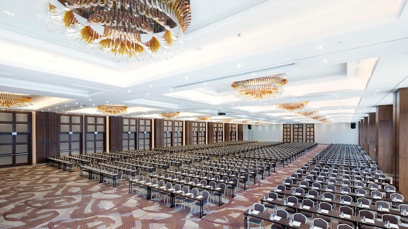 Konferencje organizowane w DoubleTree by Hilton Warsaw należą do bardzo udanych i klienci bardzo często wracają z kolejnymi tego typu projektami. Jednym z wielu powodów, który wpływa na satysfakcję i zadowolenie z organizowanych wydarzeń, konferencji biznesowych, imprez integracyjnych, jest fakt, że hotel dysponuje największą w Warszawie i okolicach powierzchnią eventową ponad 5000 m2. Składa się na nią 20 sal konferencyjnych i największa w Europie sala balowa o powierzchni ponad 2000 m2. Taka infrastruktura pozwala na elastyczne dopasowanie do potrzeb organizatorów różnego typu eventów – konwentów na kilka tysięcy osób, jak i bardziej kameralnych wydarzeń takich jak spotkanie branżowe albo konferencja prasowa dla kilkudziesięciu uczestników. Dodatkowo do dyspozycji klientów w DoubleTree by Hilton Warsaw jest powierzchnia restauracji Garden z tarasem i dostępem do ogrodu mieszcząca 450 osób i klub Zazen Club & Lounge, w którym bawić się może 400 osób. (link https://www.doubletreewarsaw.pl/eventy/konferencje-i-eventy)